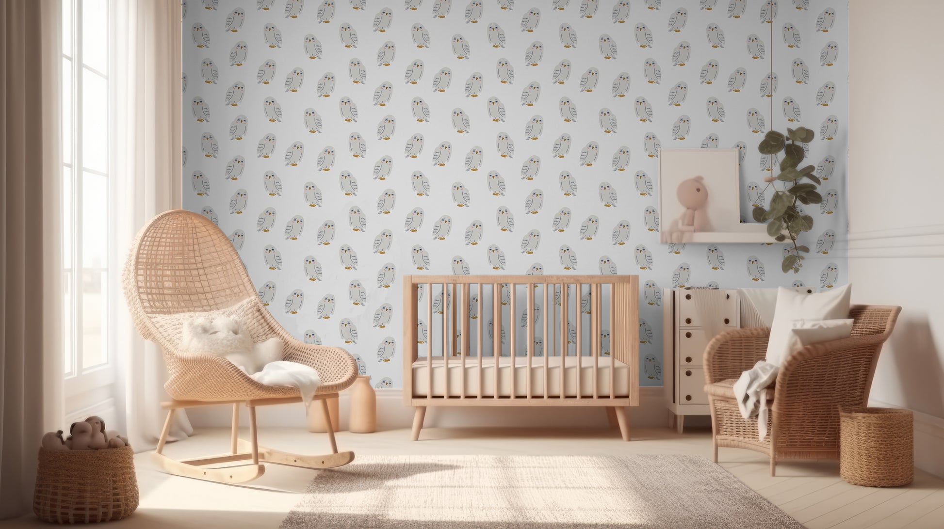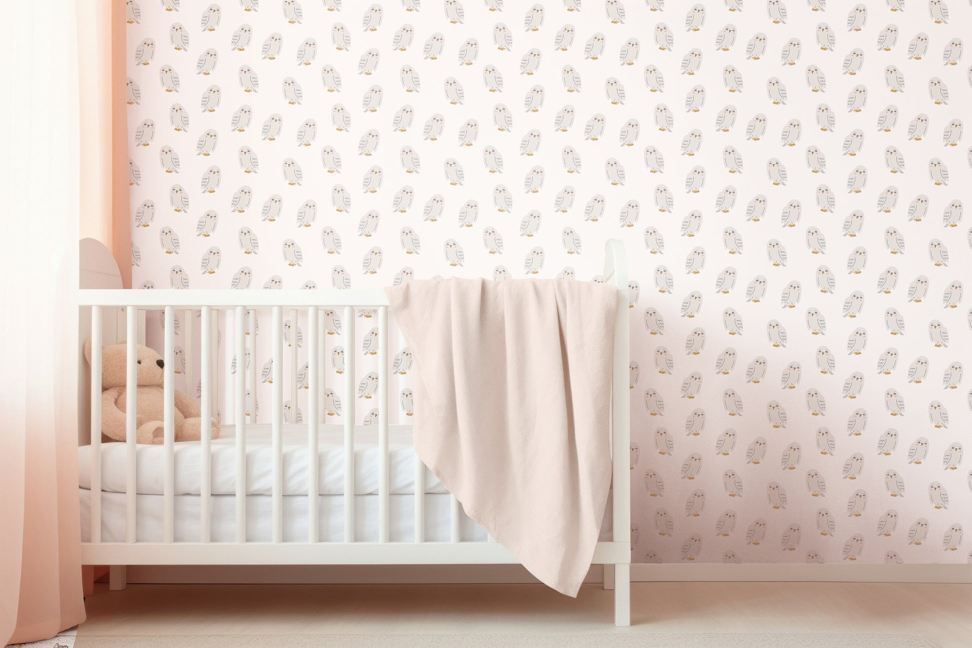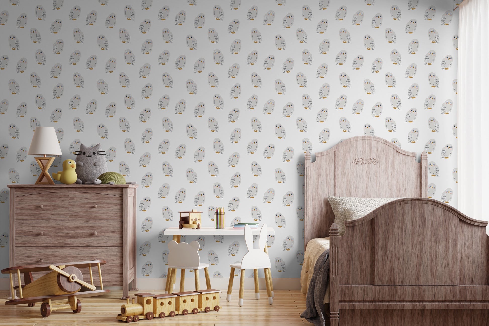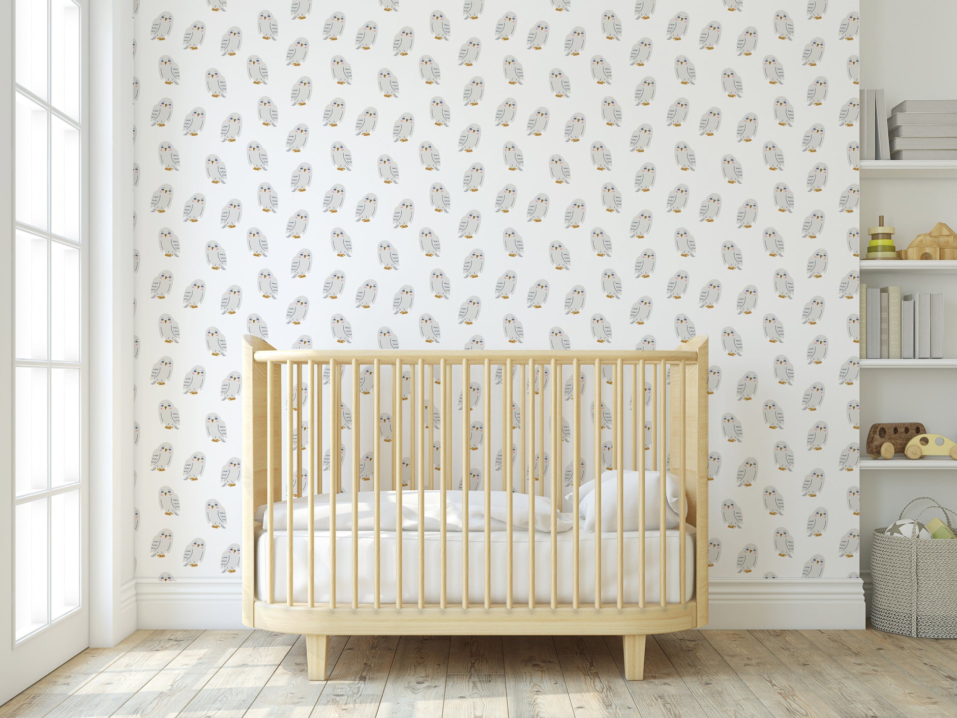 Our Harry Potter book inspired owl wallpaper is so cute for a nursery or child's bedroom.