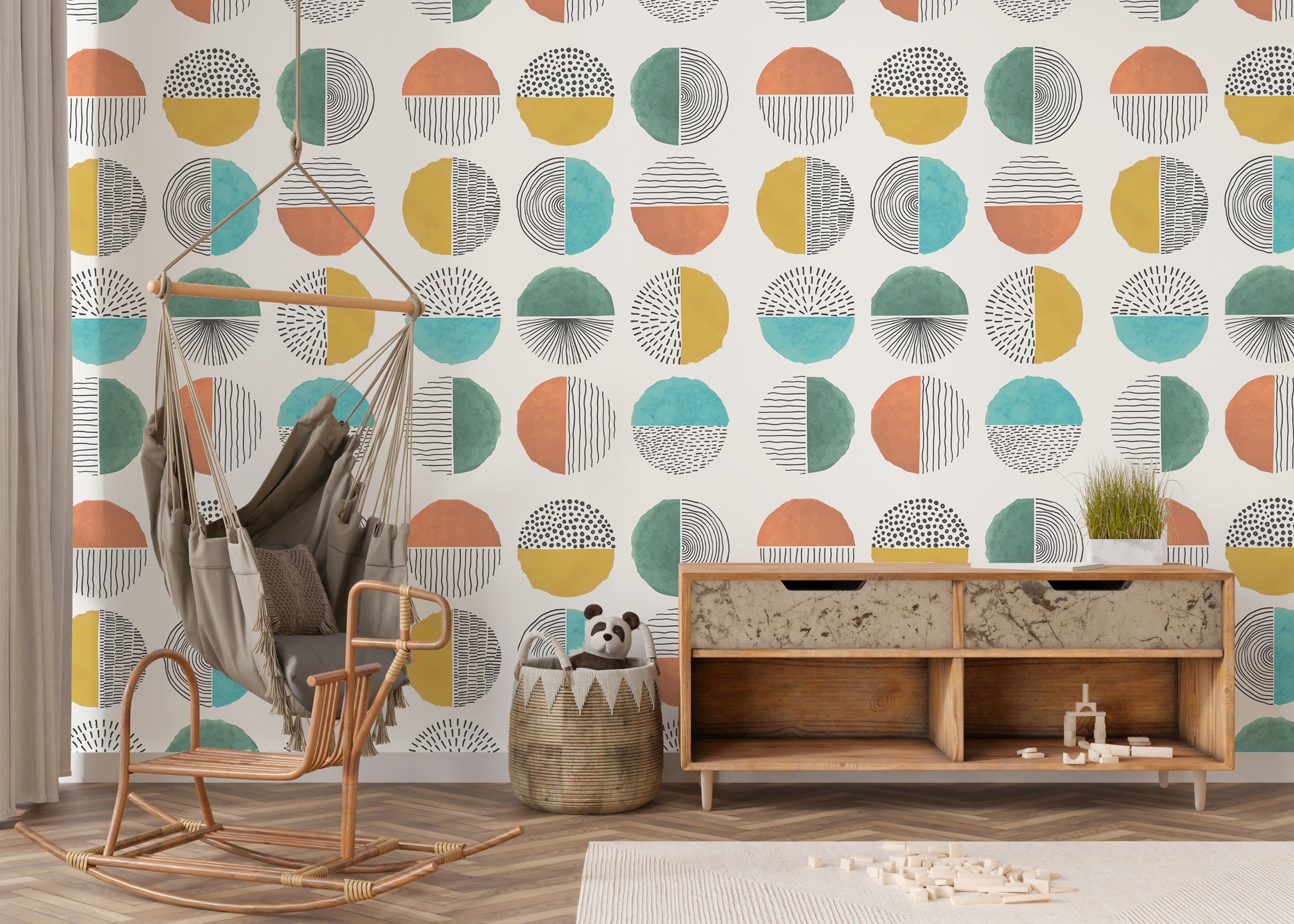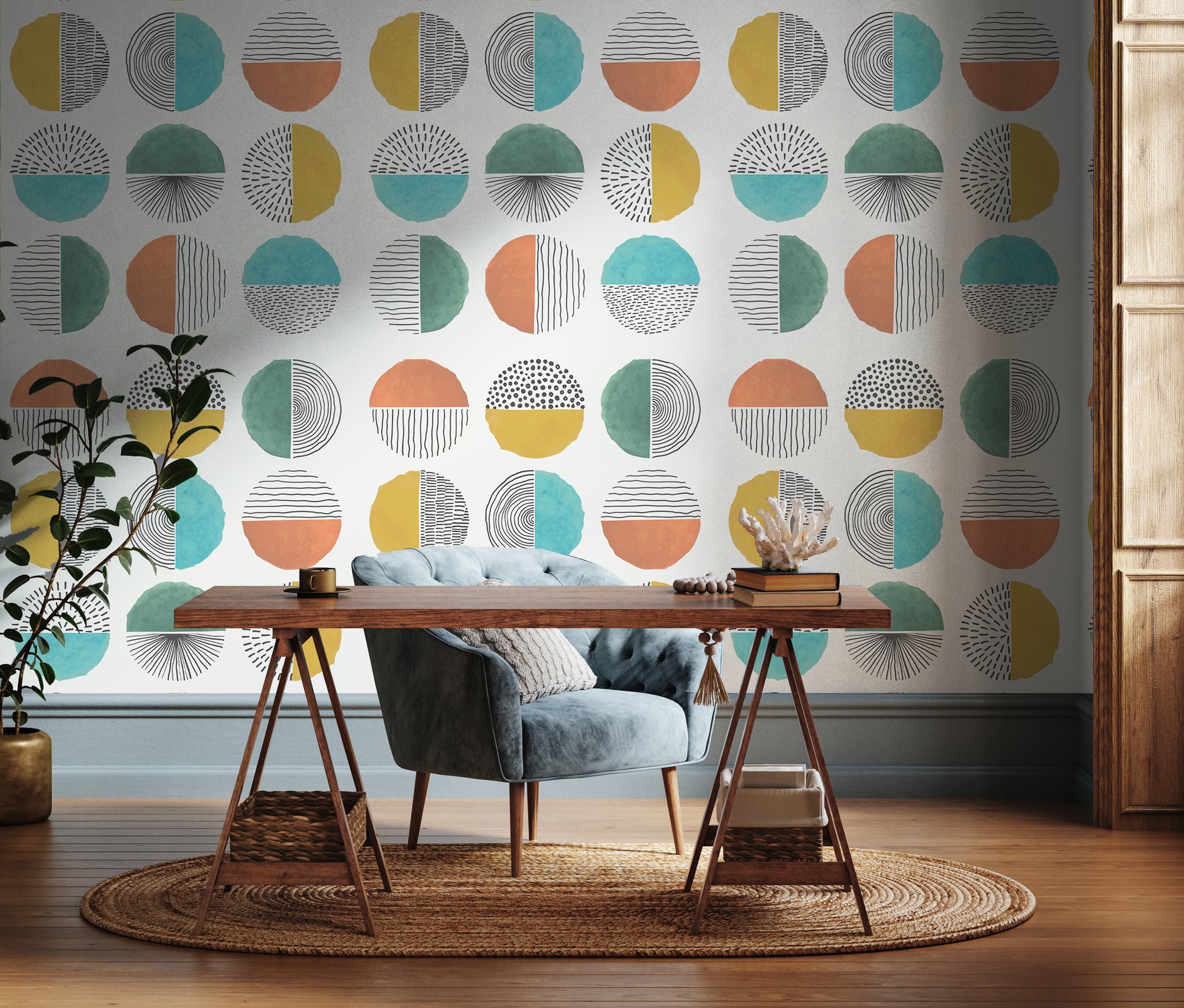 This wallpaper is a creative mix of texture and color all in a fun circular pattern.