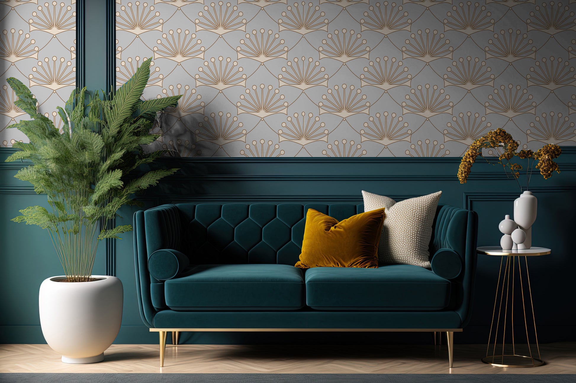 Art Deco is trending and this lotus flower print wallpaper puts a beautiful modern spin on the classic design era.