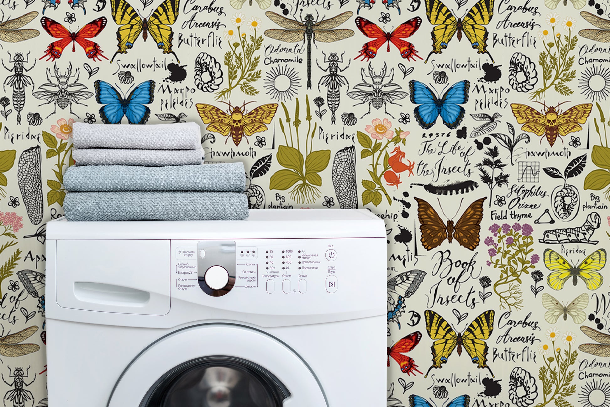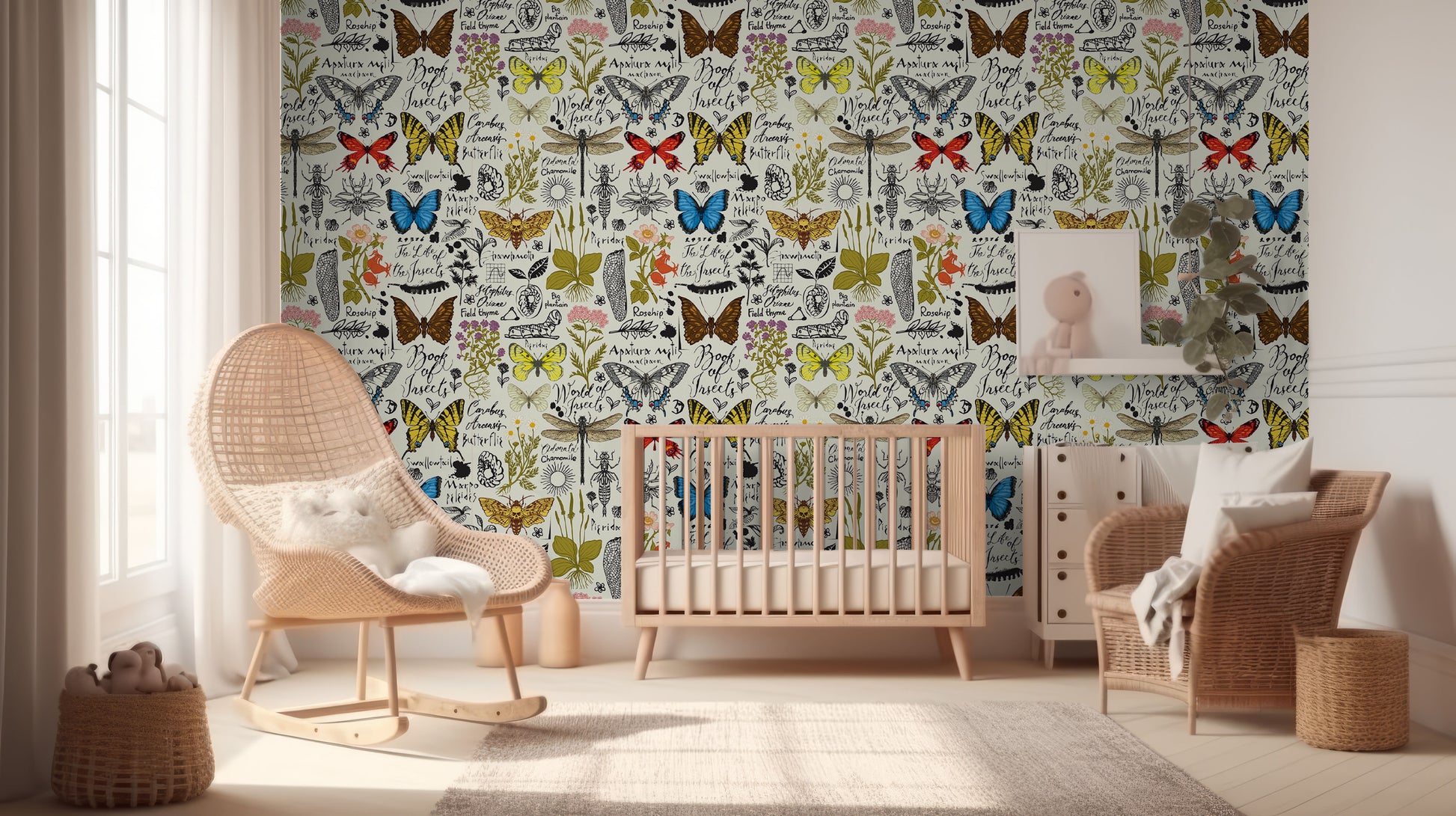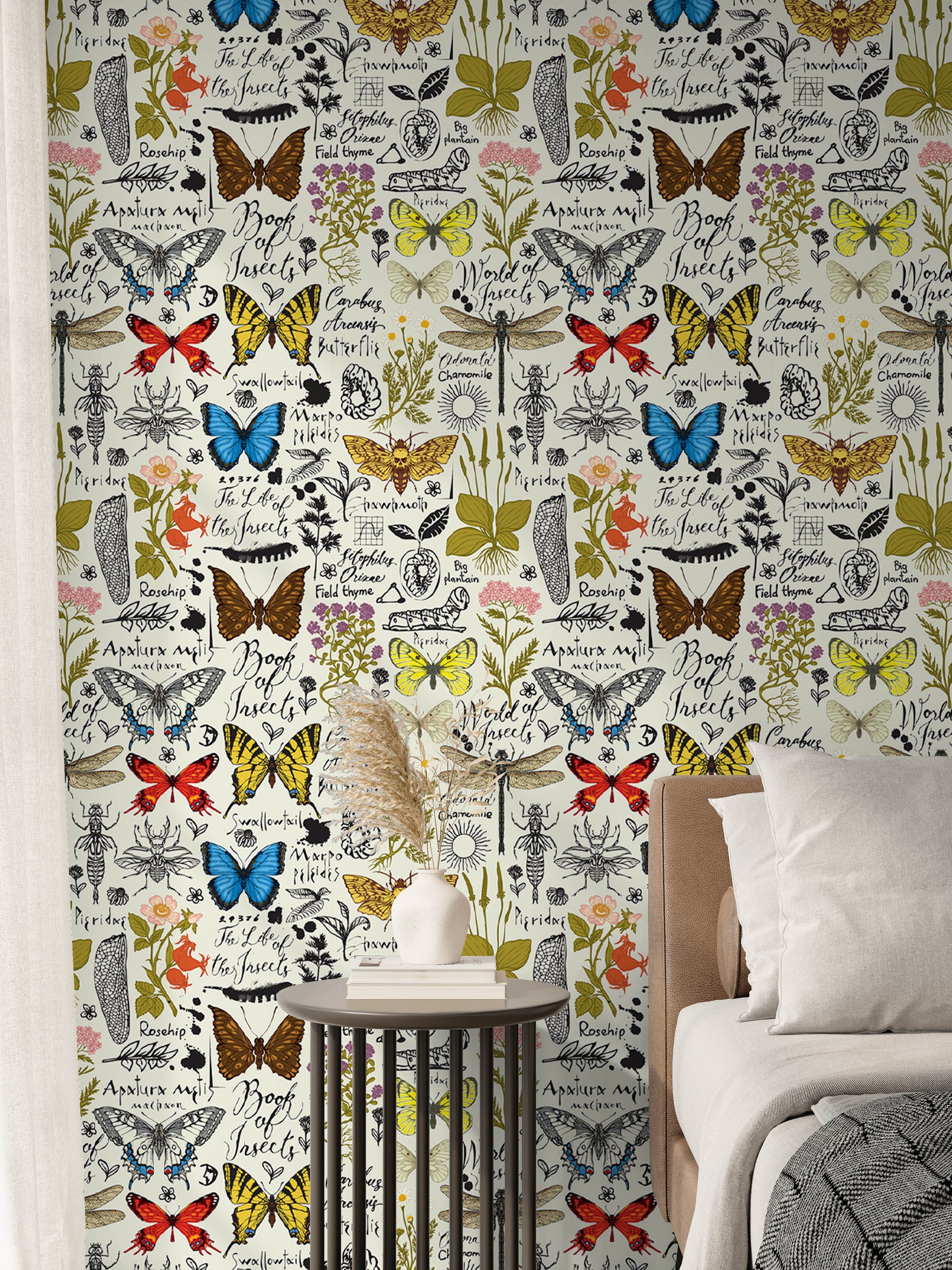 This high quality insect wallpaper features butterflies, dragonflies, moths in a hand drawn pattern.