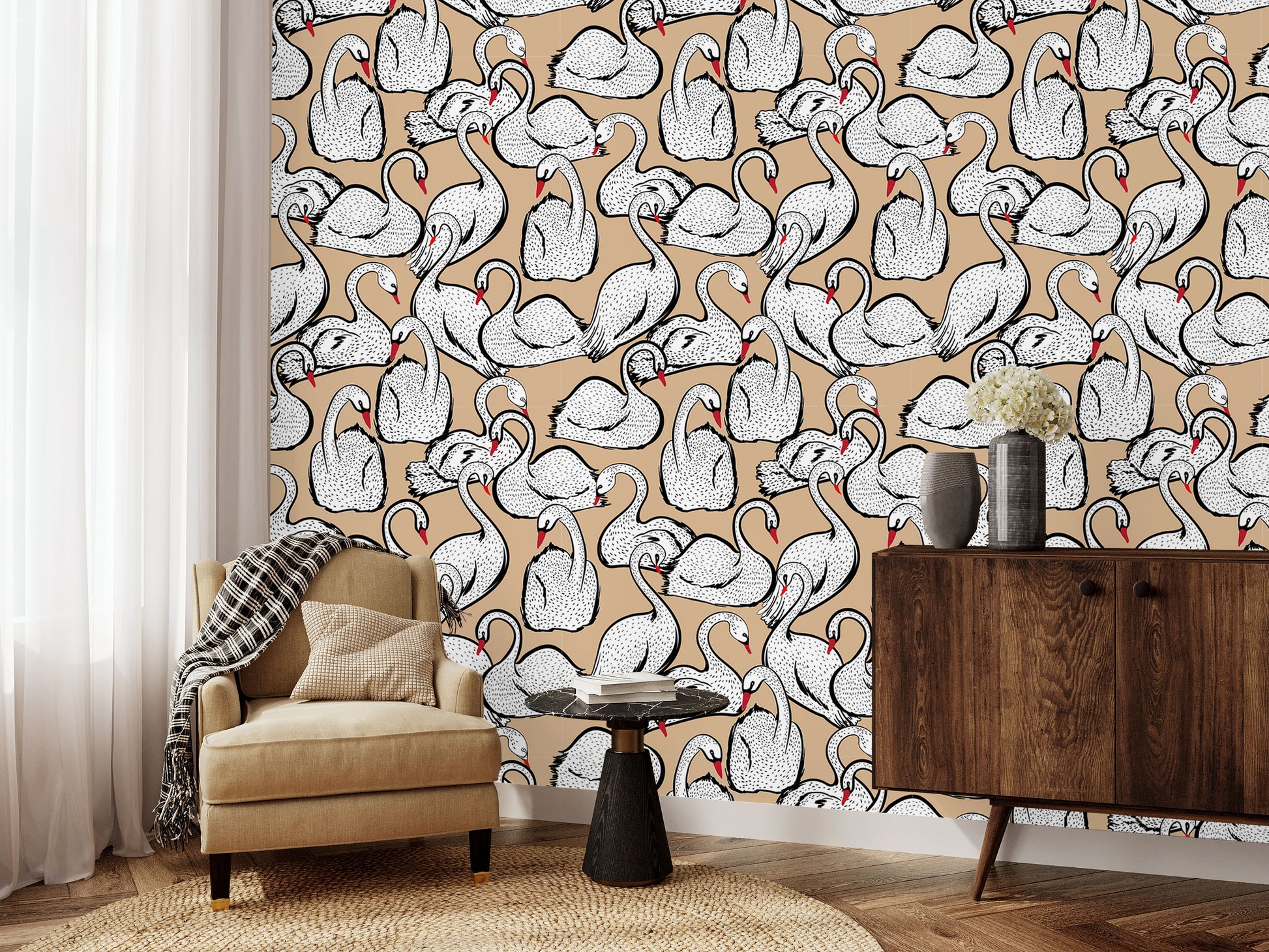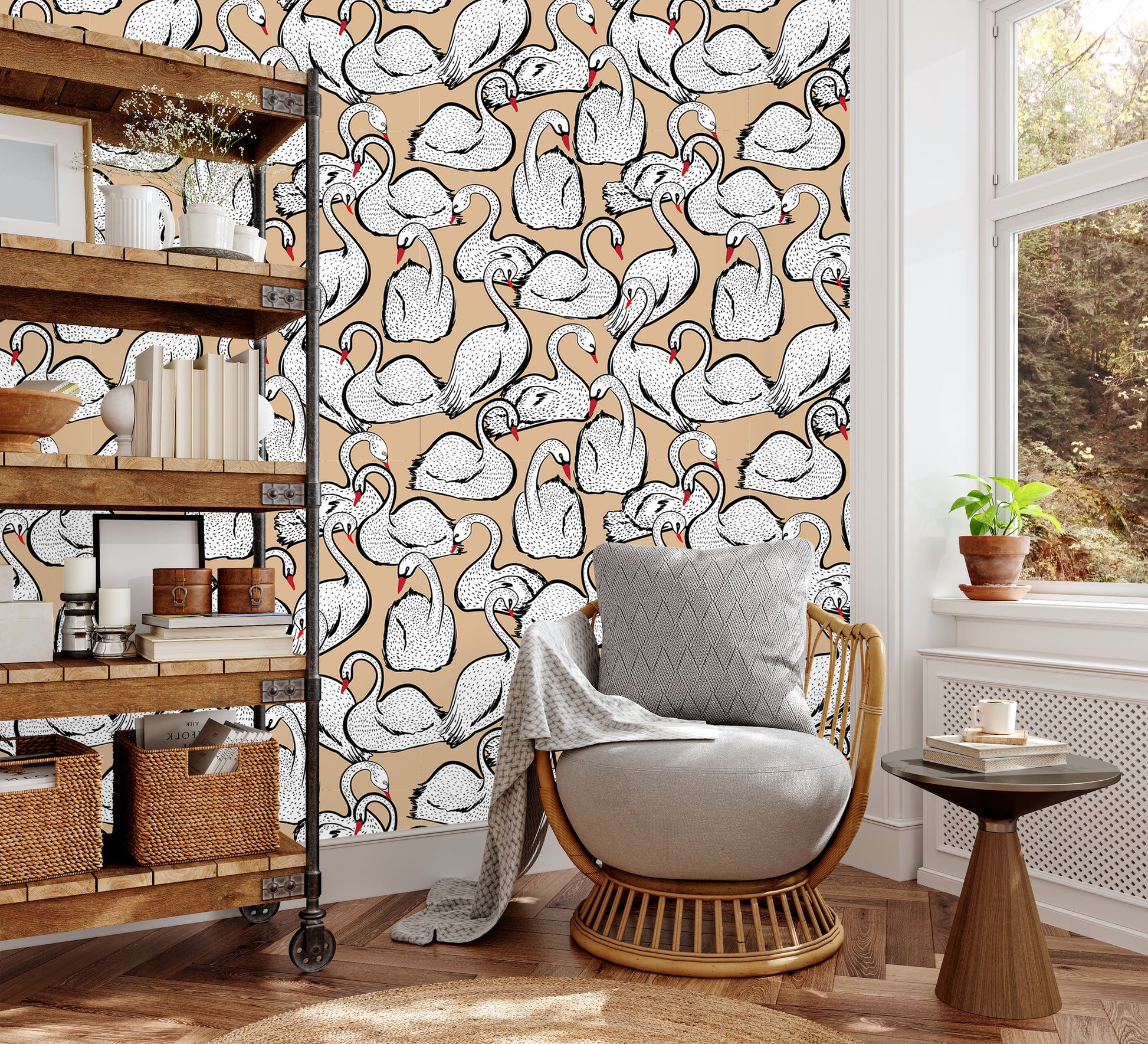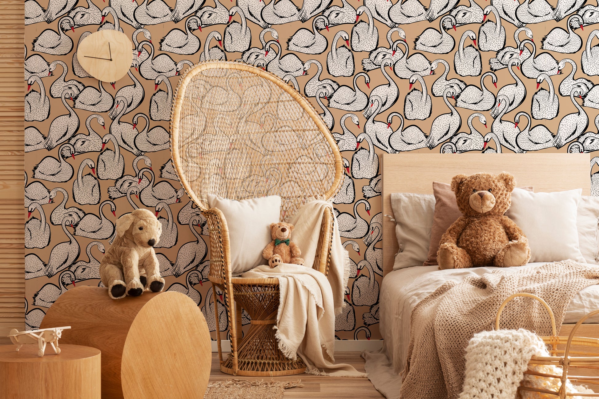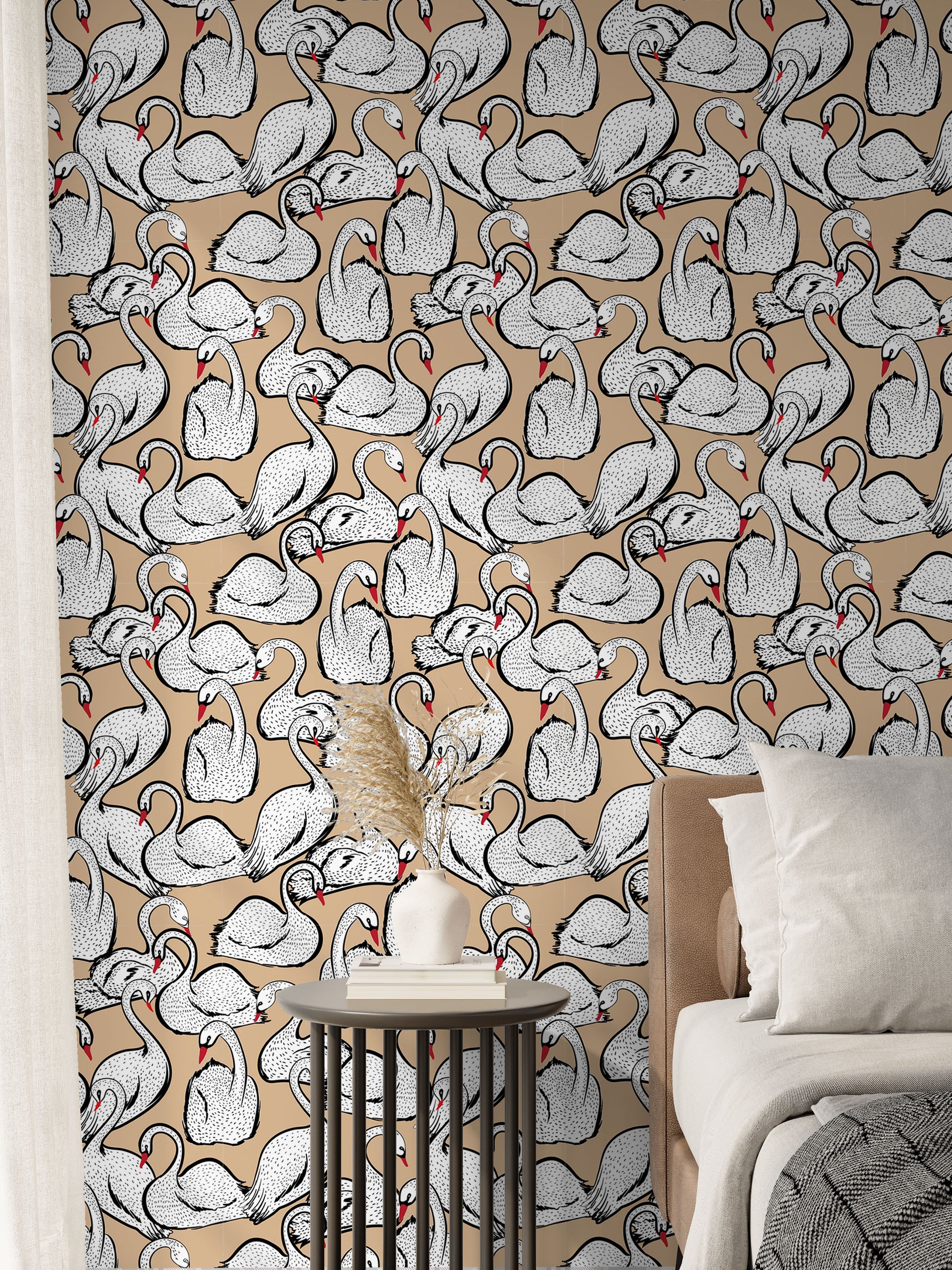 Our modern pop art style swan patterned will add a little whimsy to any space. No ugly ducklings here.