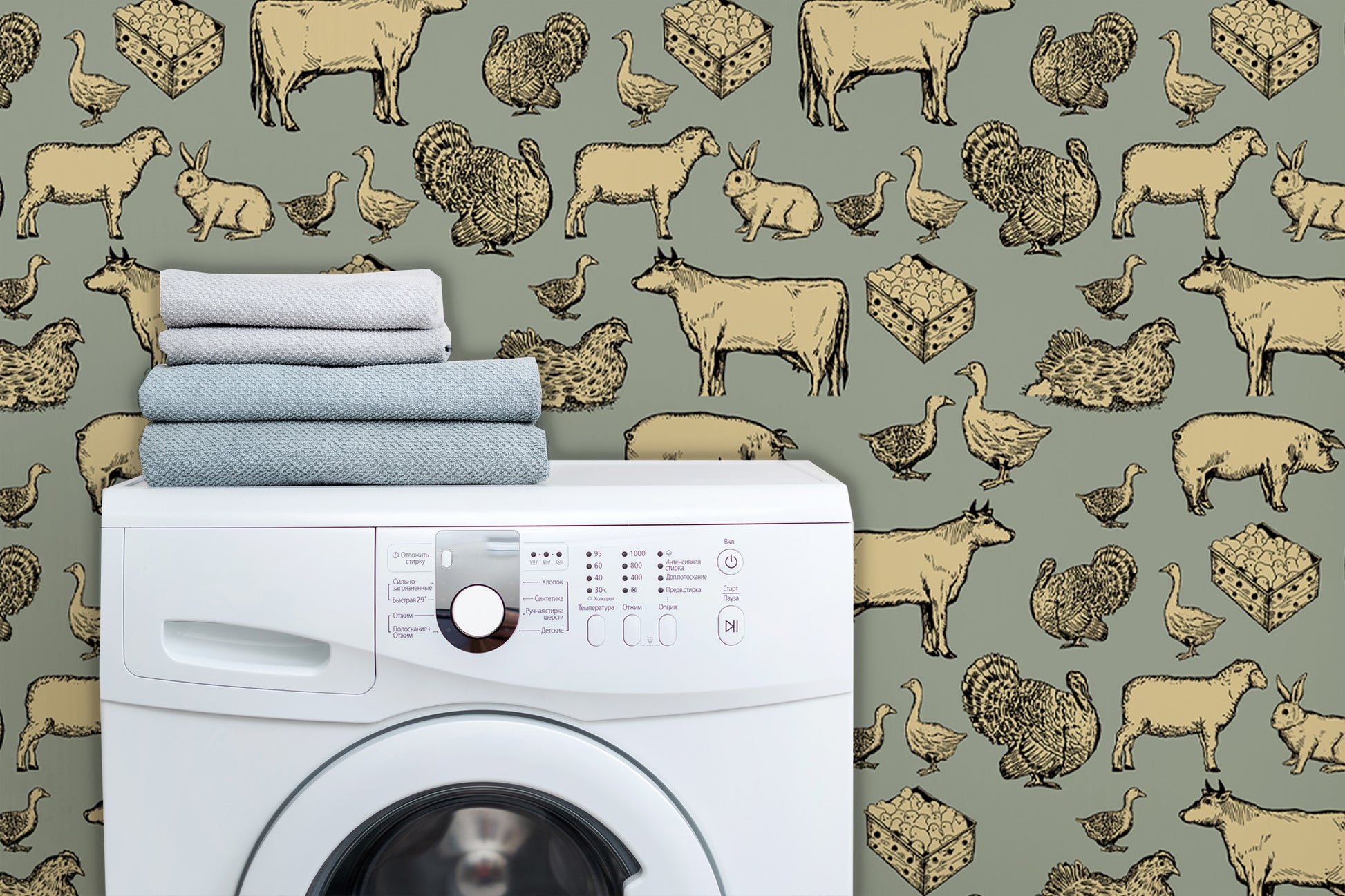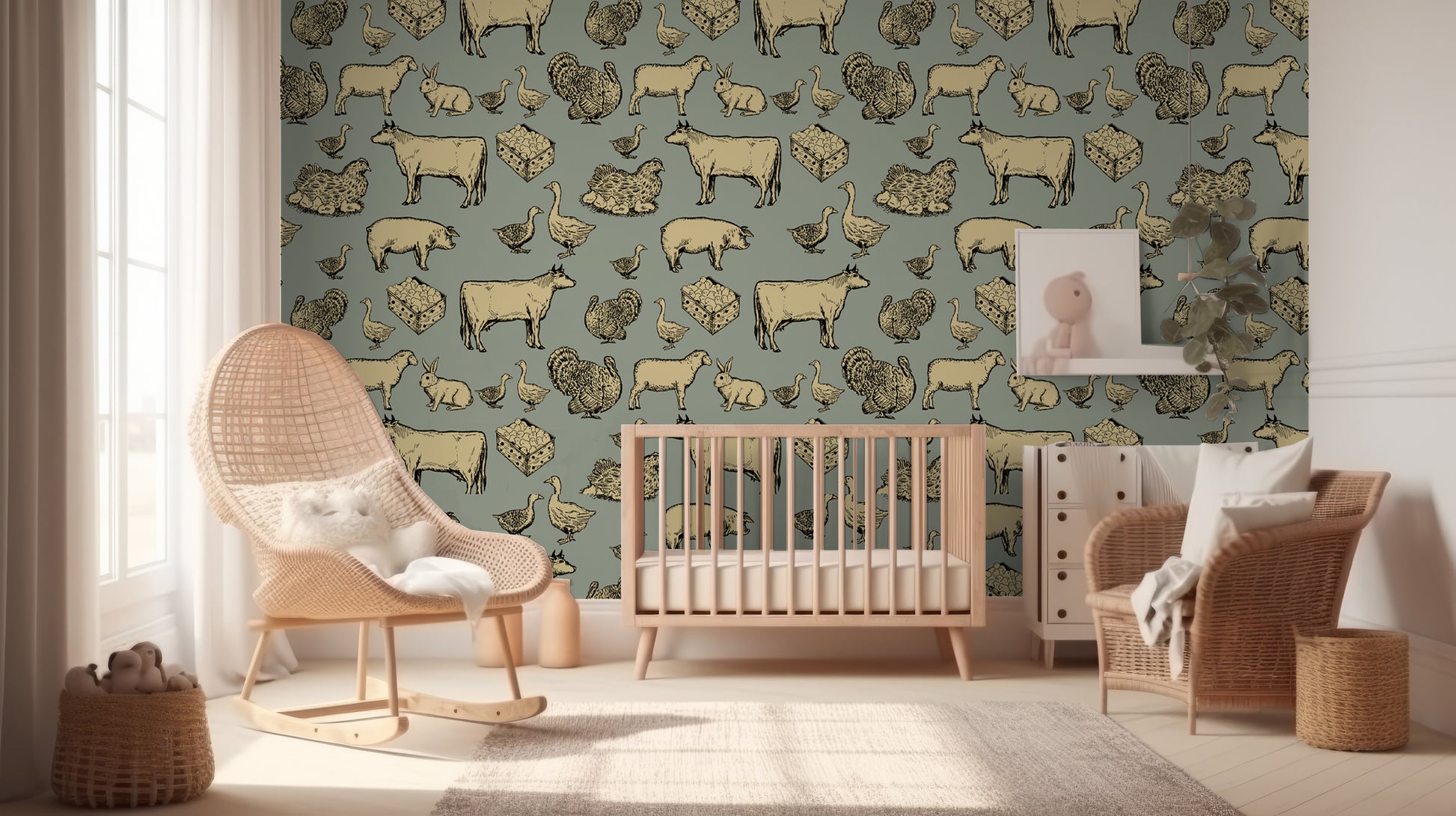 How cute is our farm print wallpaper? This modern farmhouse pattern is sure to be you having you sing Old McDonald had a farm.