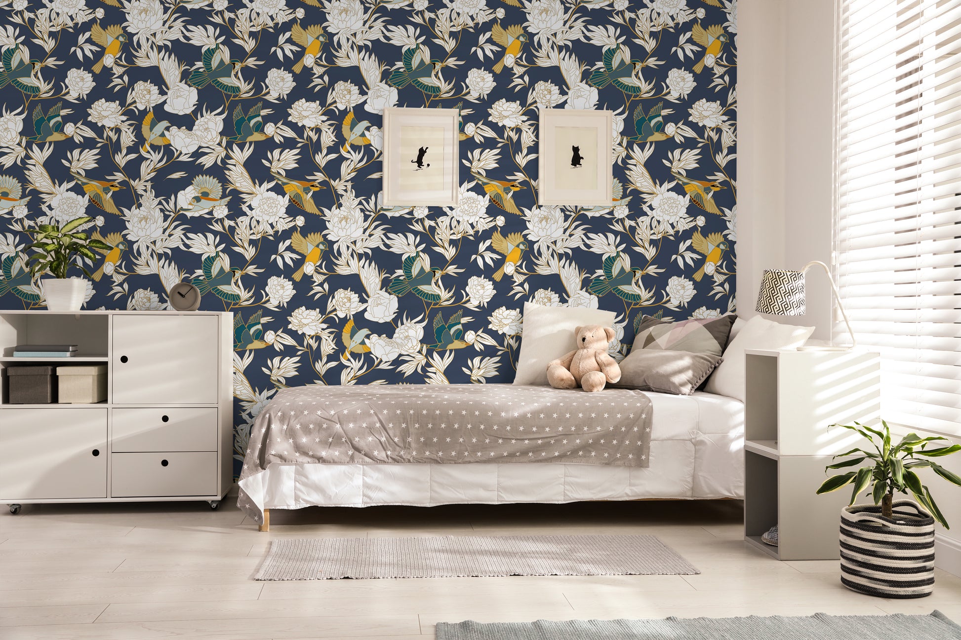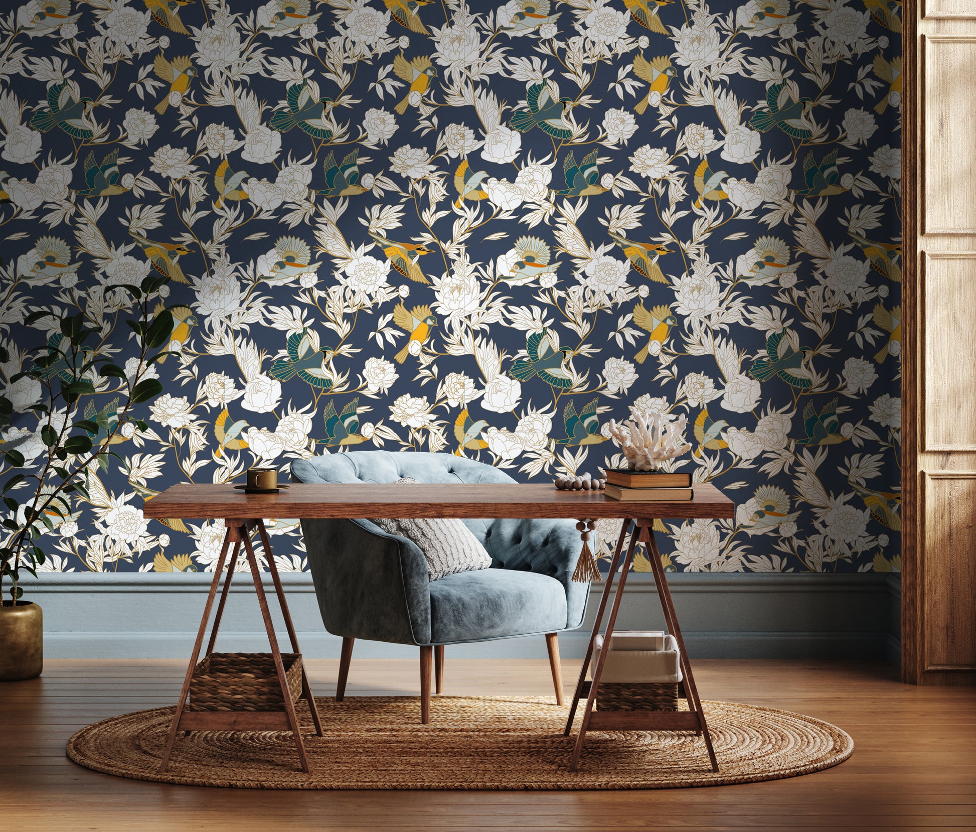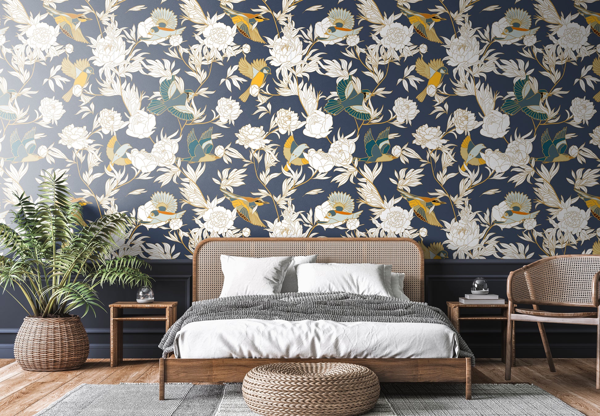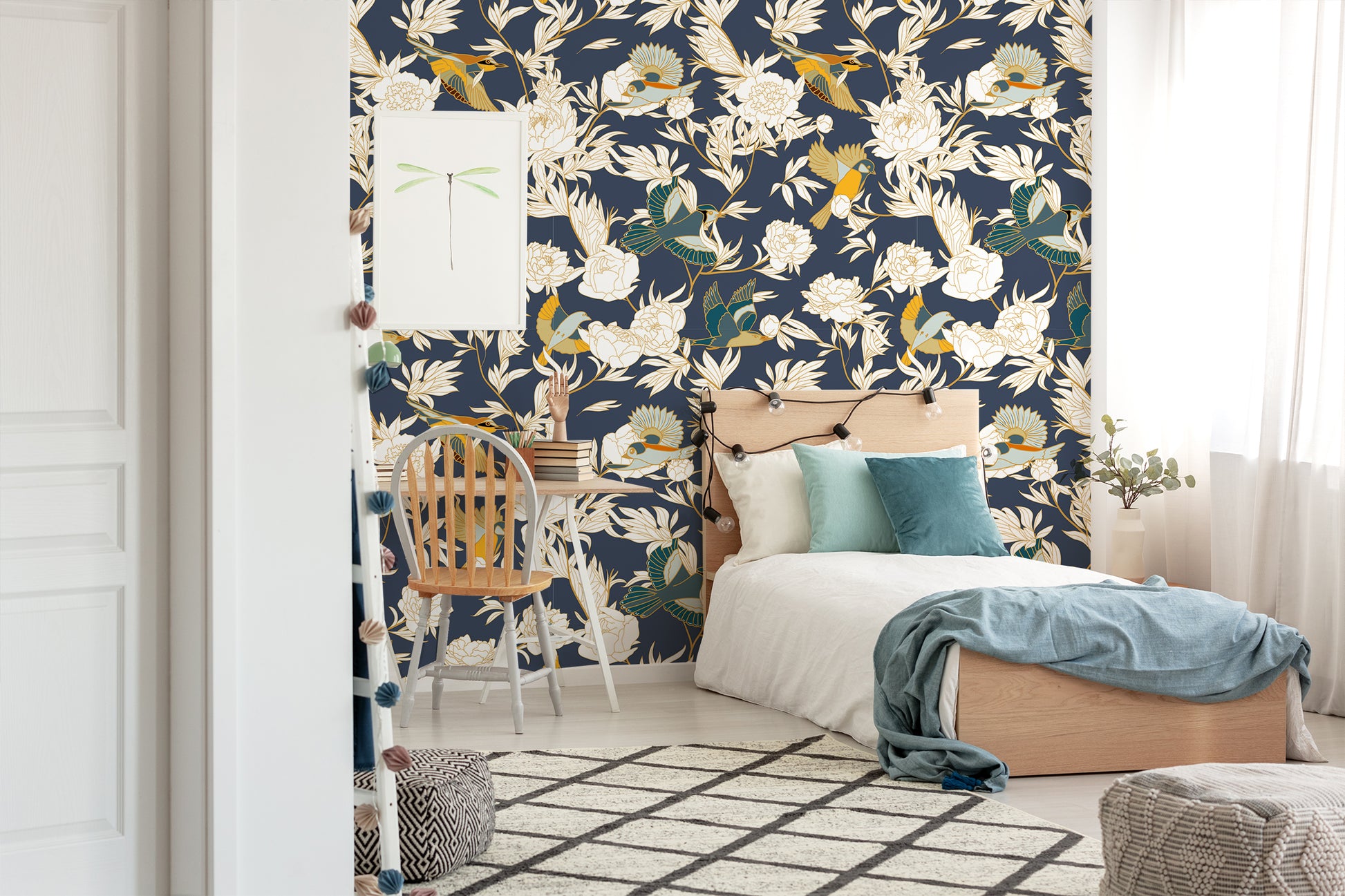 Floral Ceramic Bird Removable Peel And Stick Wallpaper