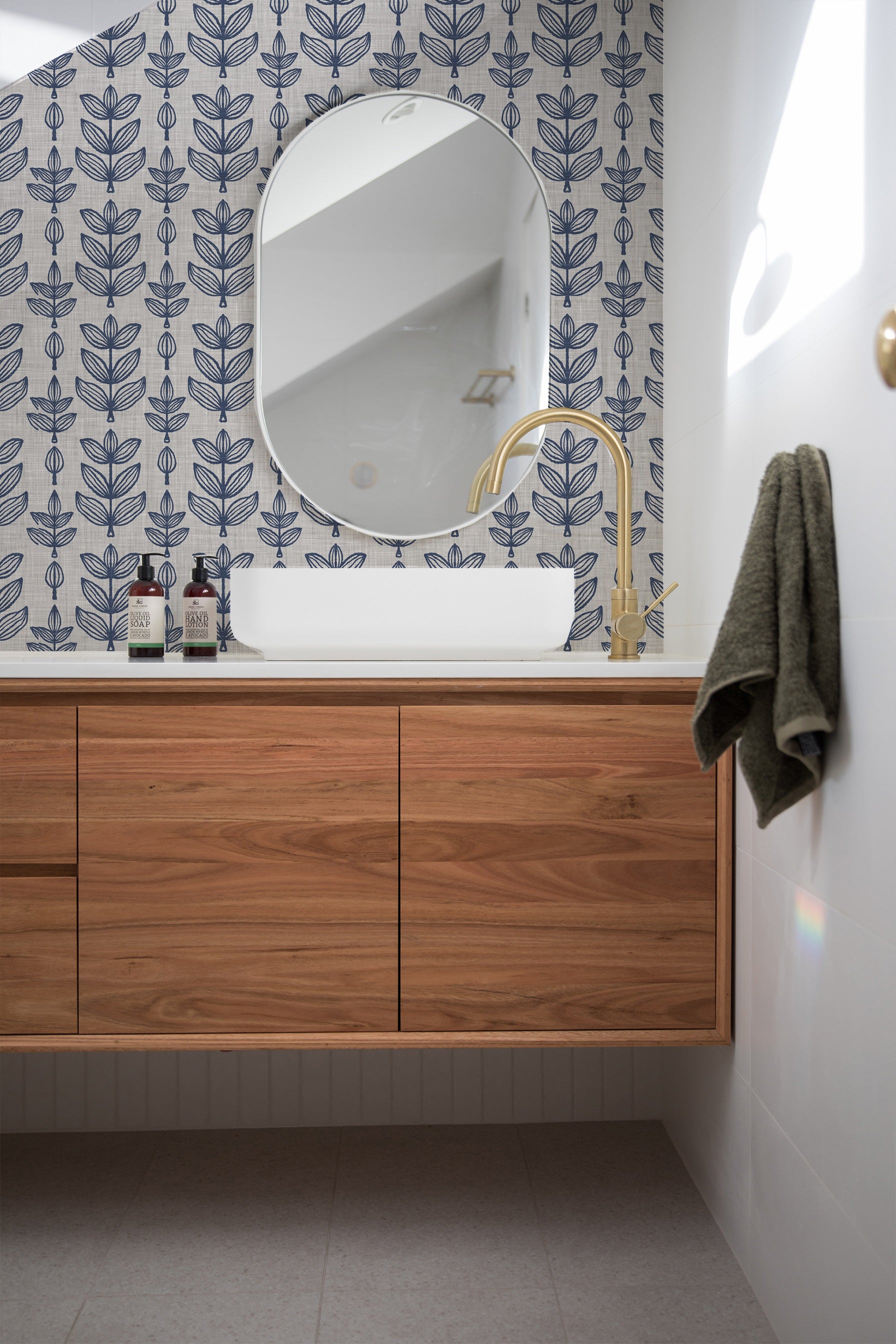 Our beautiful delicate blue floral on a printed linen background is on trend but also classic enough to look appropriate in a historical home.