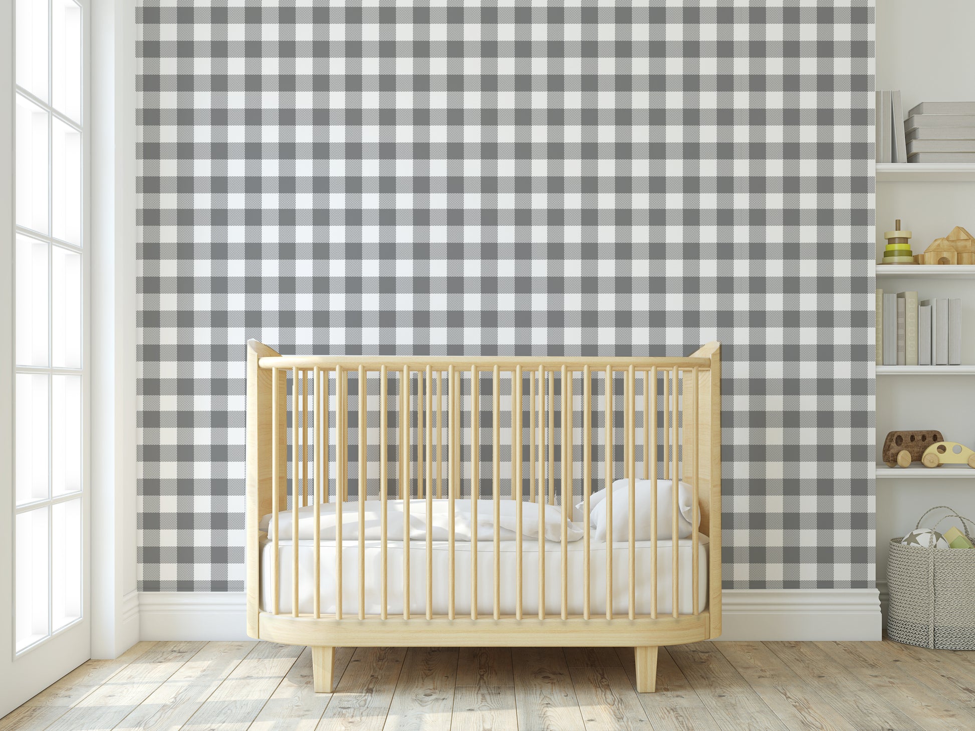 Gray Gingham wallpaper is a perfect neutral preppy plaid. It's a great gender neutral wallpaper for those who want a little detail in their space but nothing themed.