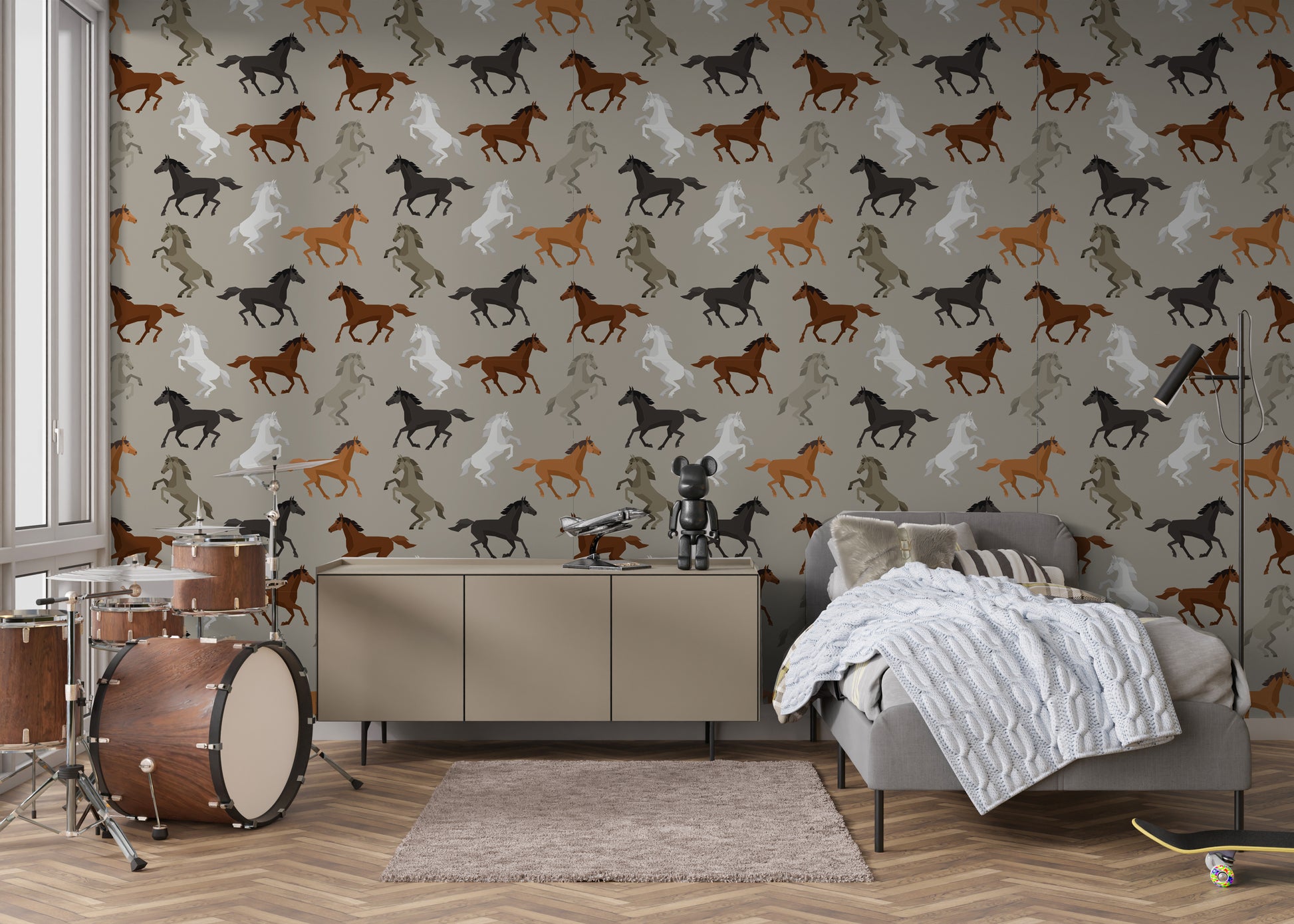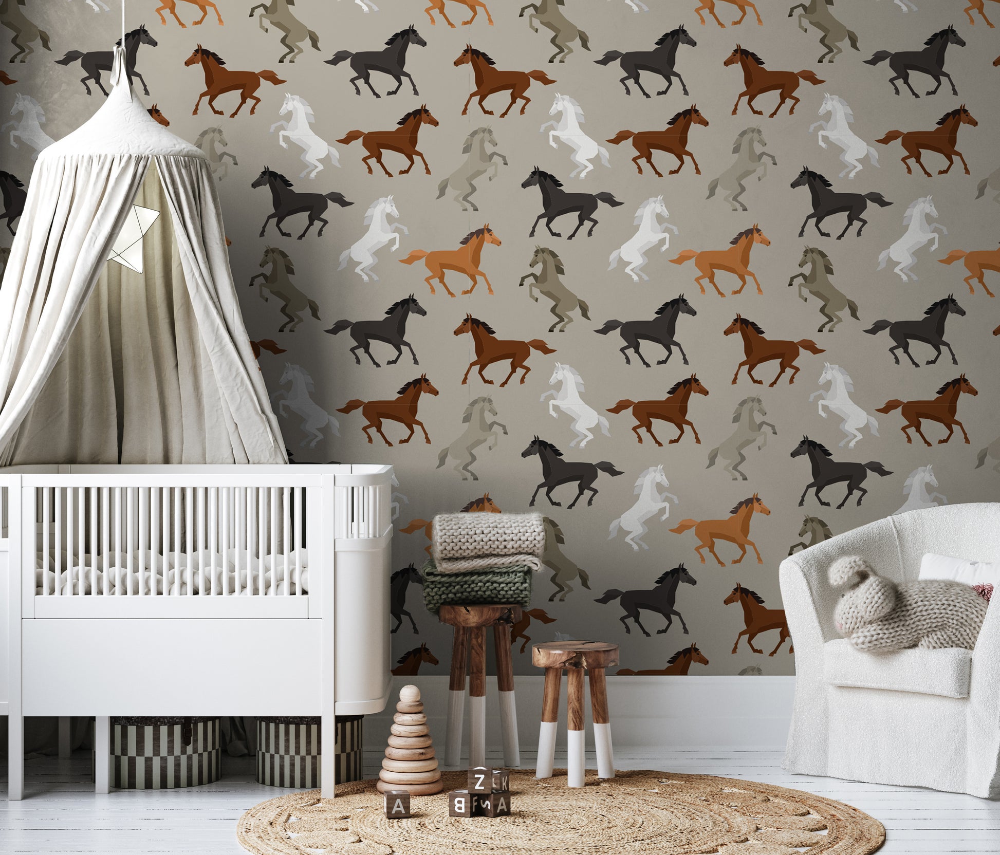Thi Equestrian horse themed print in mixed neutral i perfect for the little horse lover in your life. It would be fun in a nursery or child's bedroom.