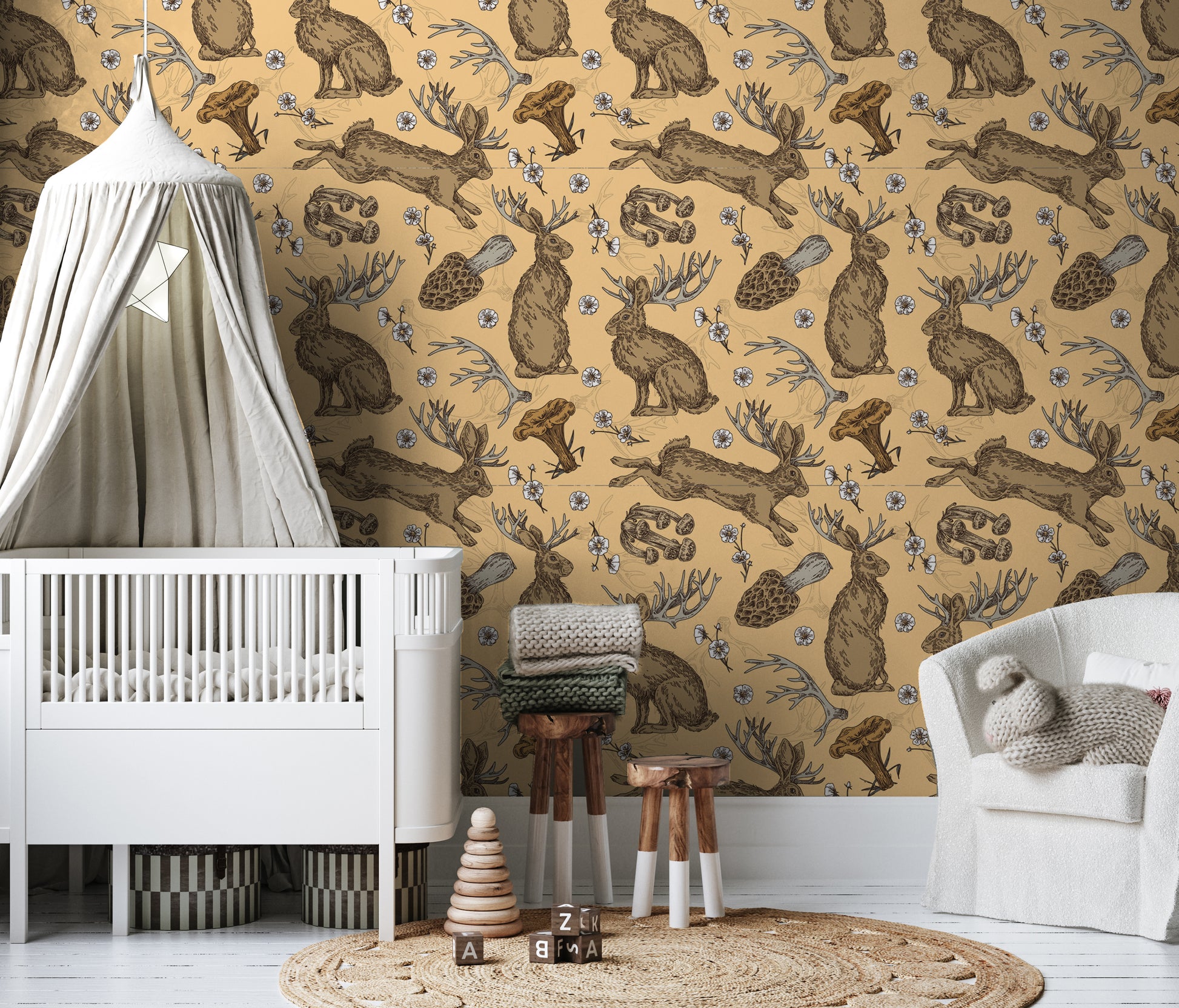 Jackalope And Mushroom Removable Peel And Stick Wallpaper