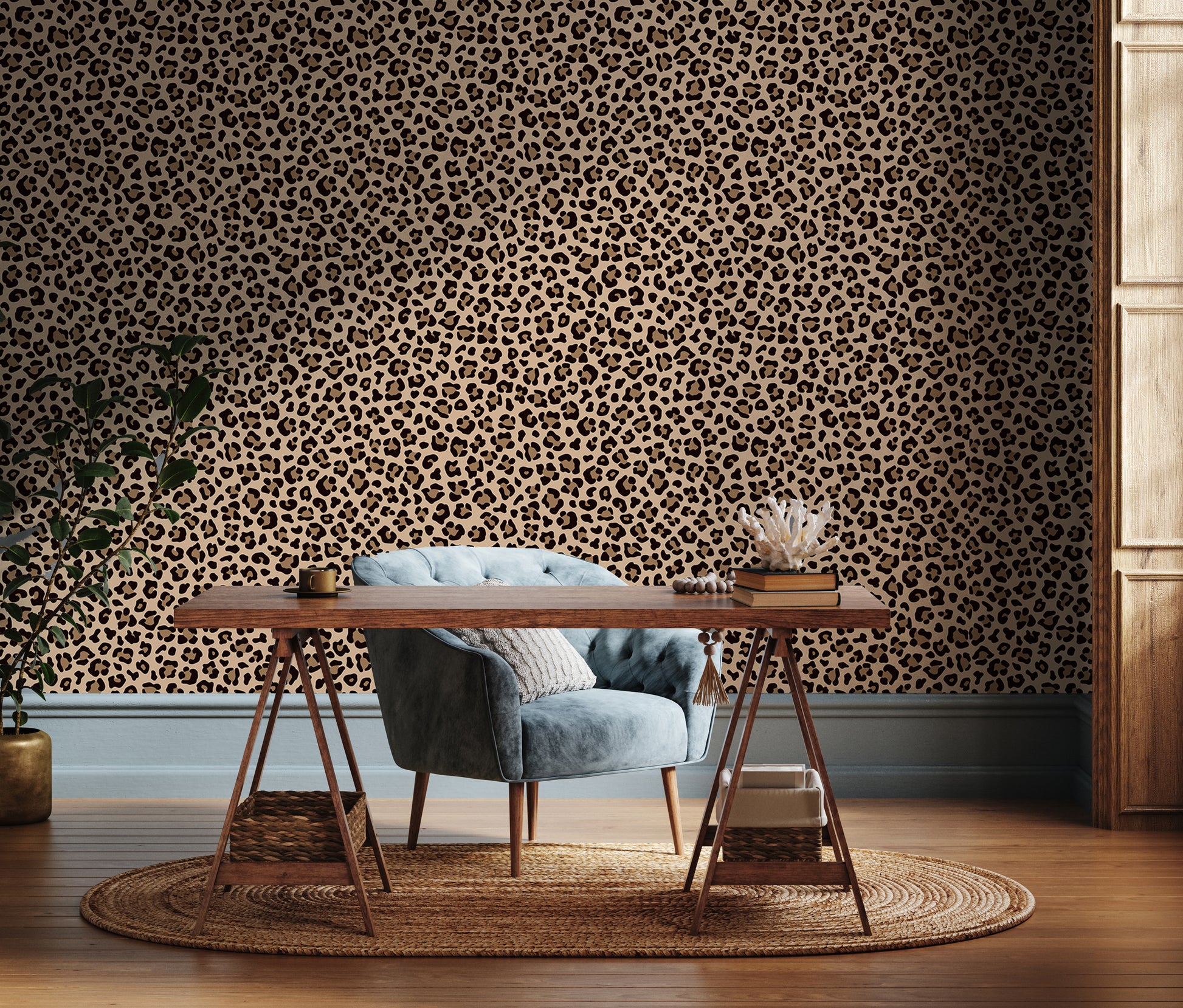 This cheetah print wallpaper perfectly mixes neutral colors to spice up any space
