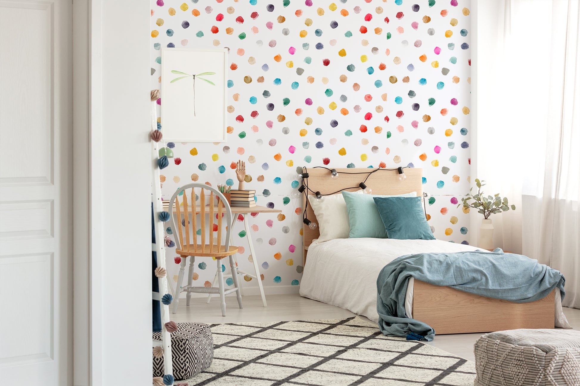 We have all your favorite colors covered in this playful rainbow polka dot wallpaper.