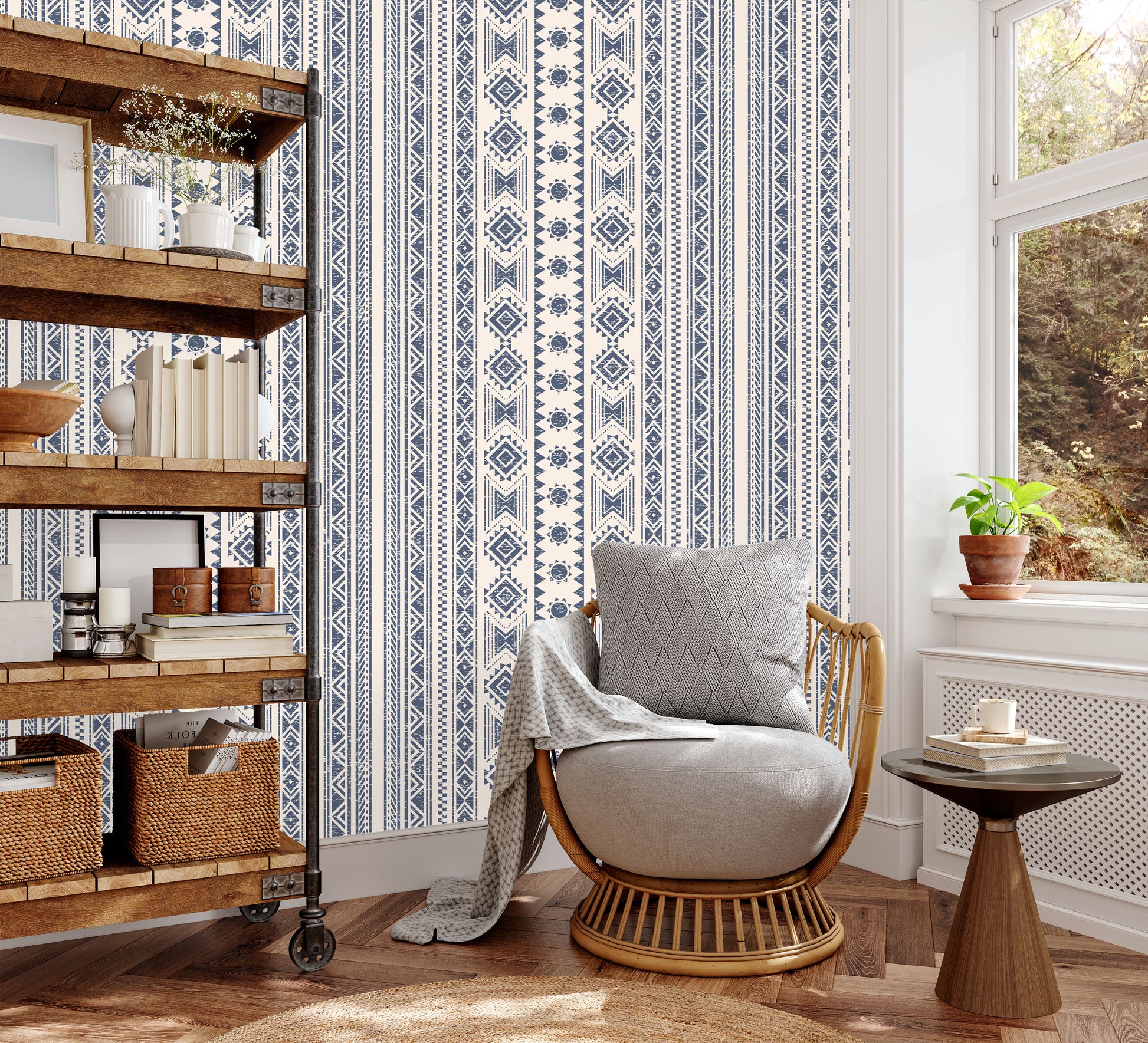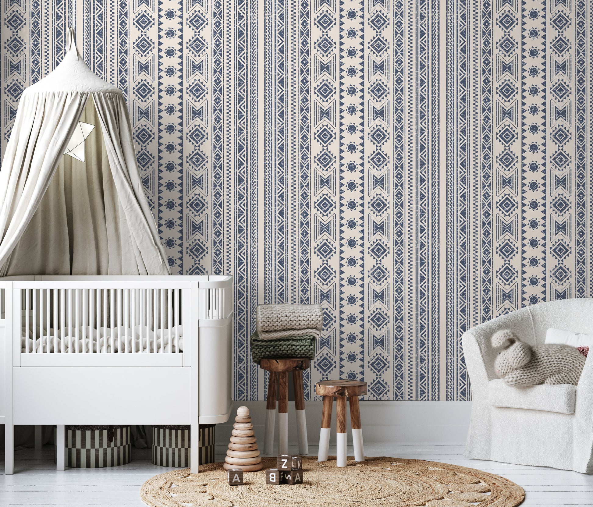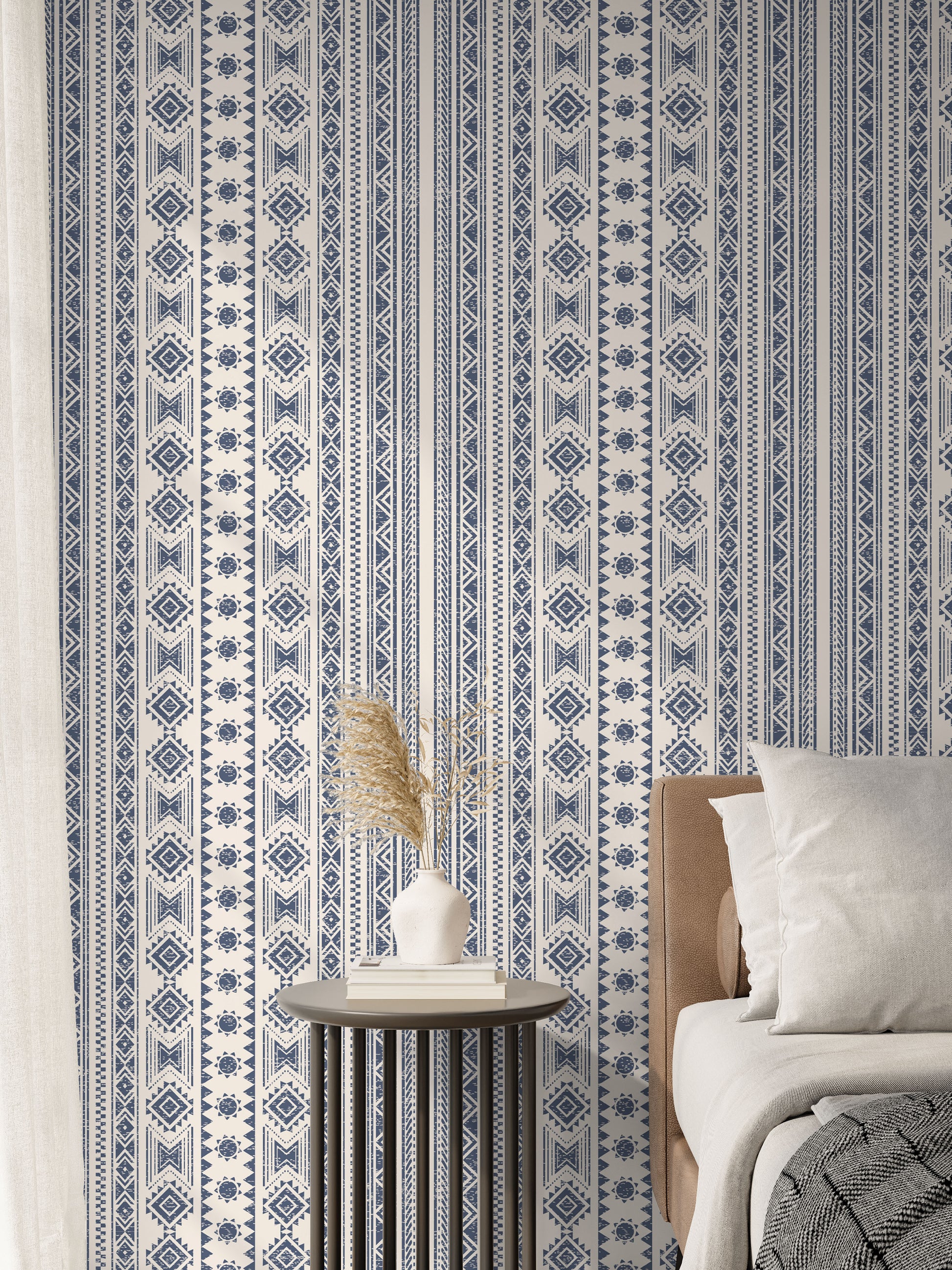 Add some Southwestern flair to your room with our navy blue ikat peel and stick wallpaper.