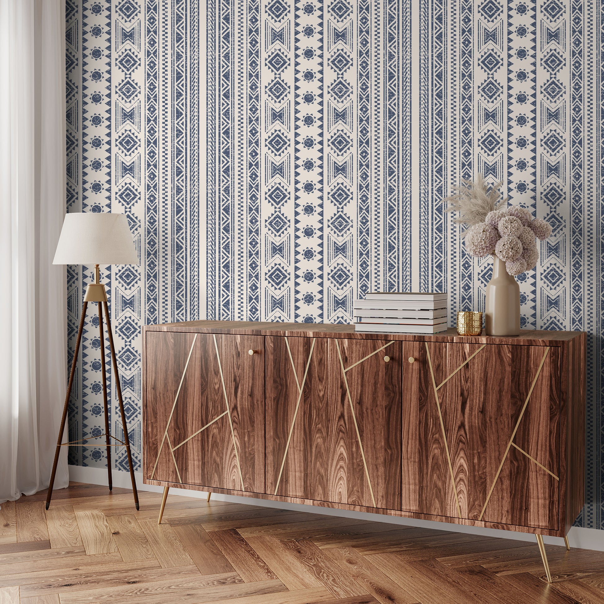 Navy blue western Ikat Removable Peel And Stick Wallpaper