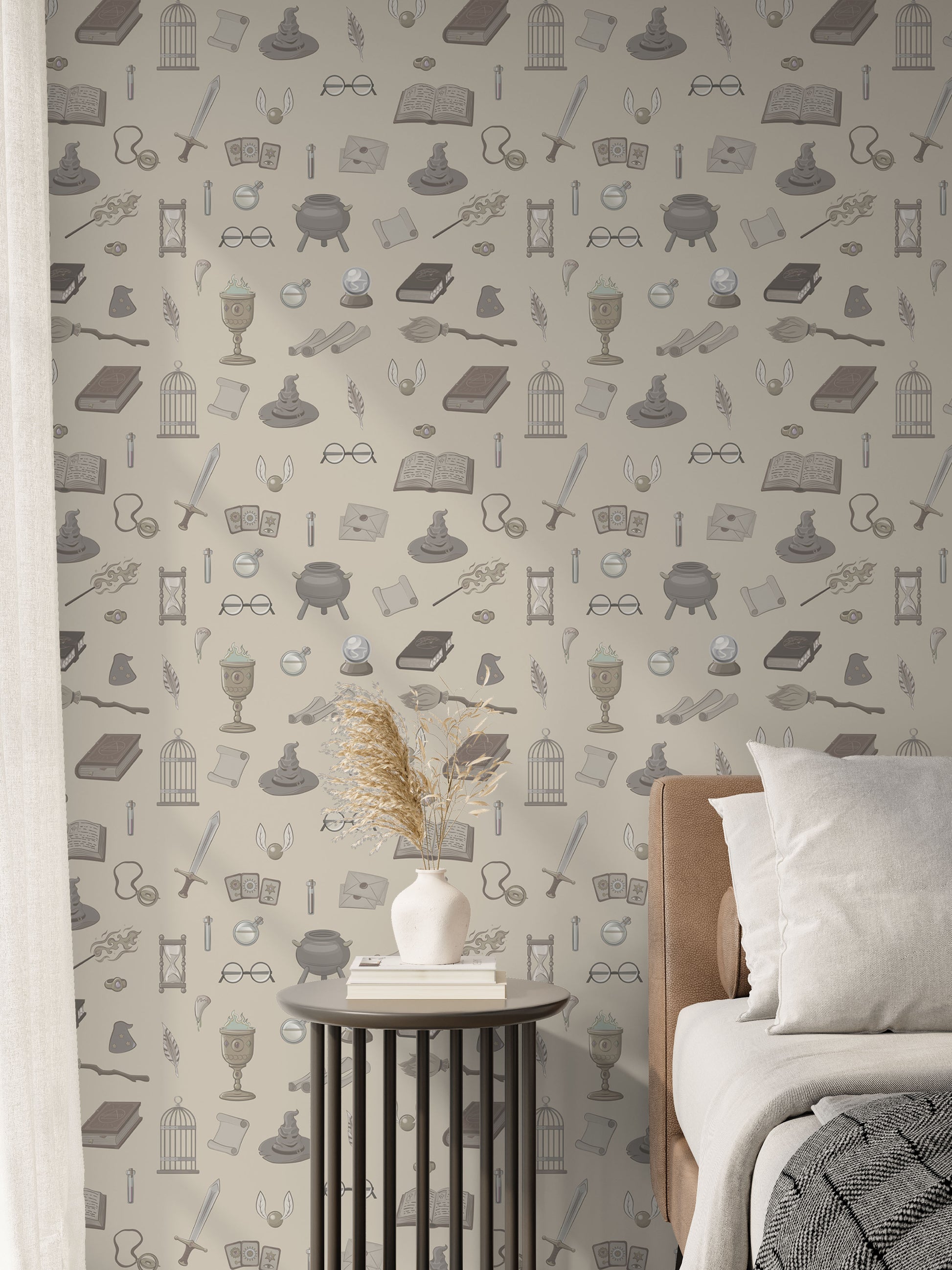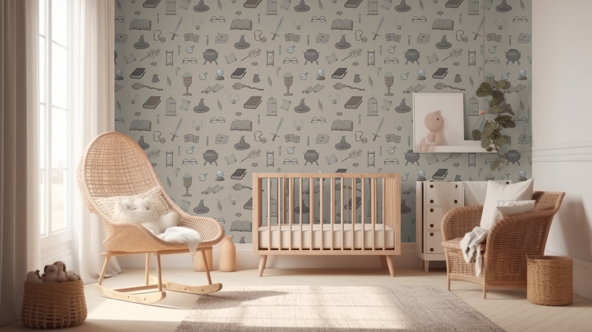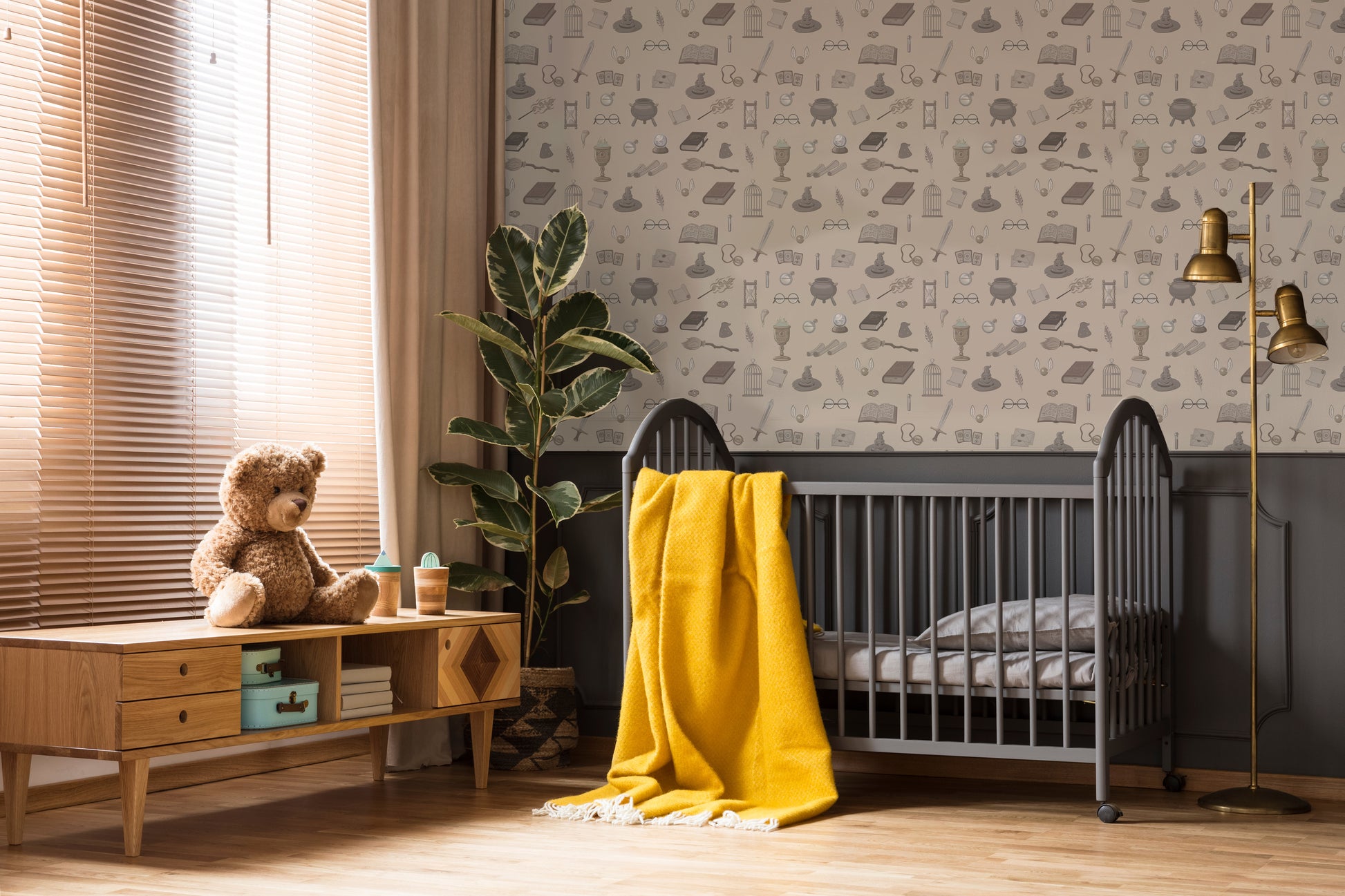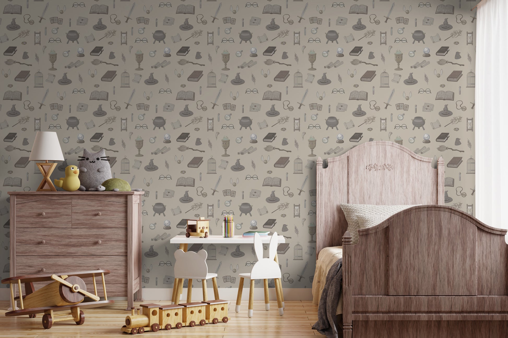 Our neutral wizard wallpaper is inspired from H Potter series and will have your little wizard dreaming of the day they get their letter to Hogwarts.